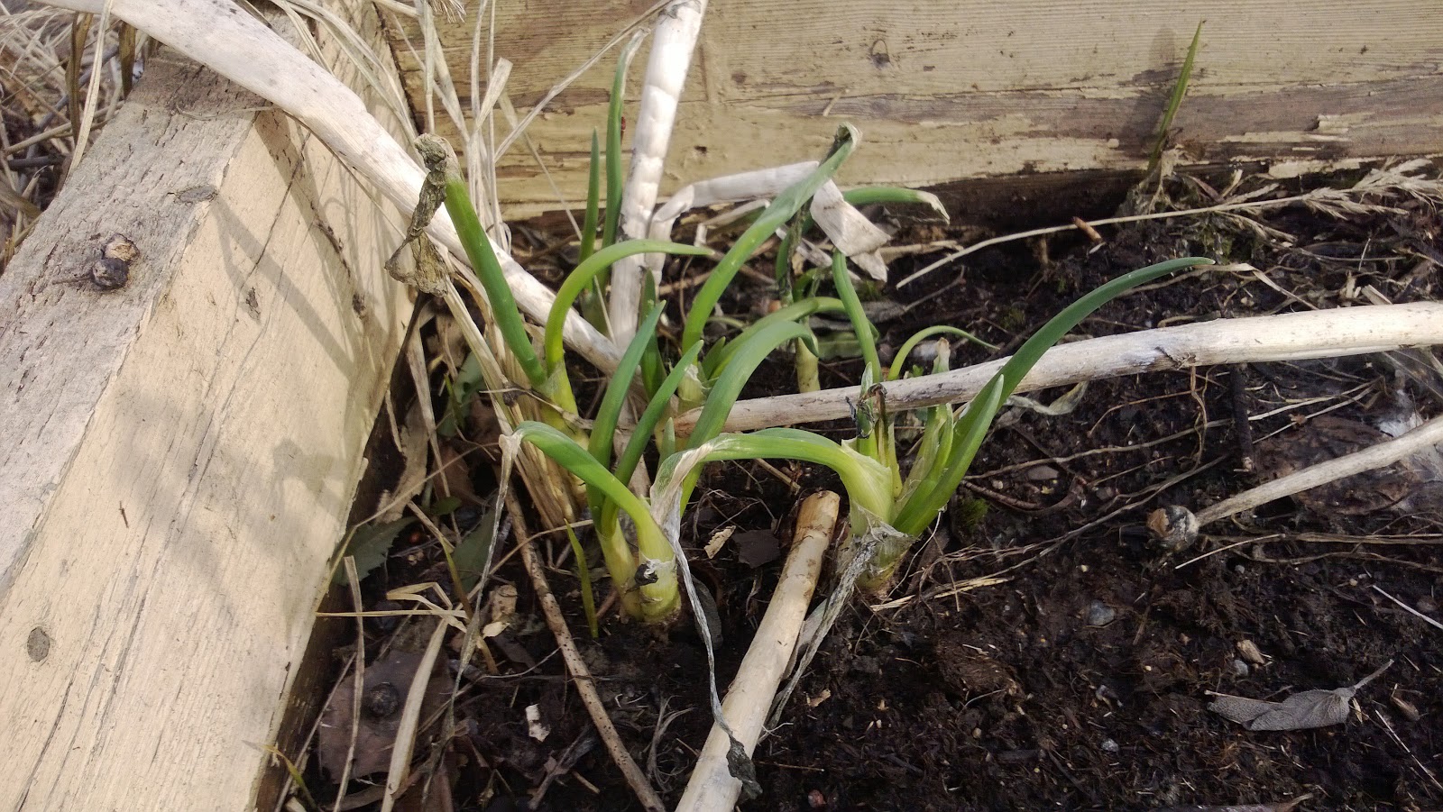 Perinteisesti vappuna istutetaan kasvimaat, mutta tänä vuonna kylmä pohjoistuuli vonkui korvissa, joten tyydyin vain tekemään pikakitkennän. Miten hienosti olikaan voikukka ja juolavehnä selvinneet talven koettelemuksista! 3 ämpärillistä sain nyhdettyä pois. Ilmasipuli onneksi toi lohtua, kun oli tehnyt terhakkaita versoja lisukesalaattiin laitettavaksi.